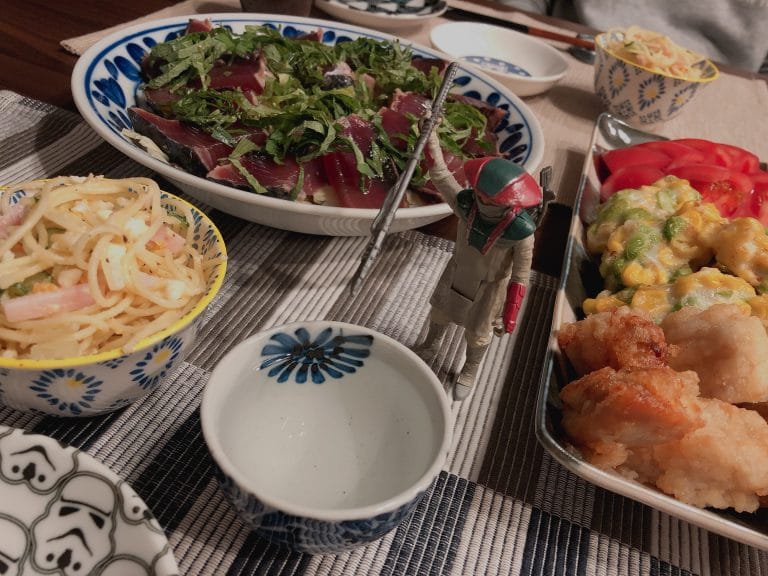 カツオのタタキ(ゆでキャベツと青じそのせ)