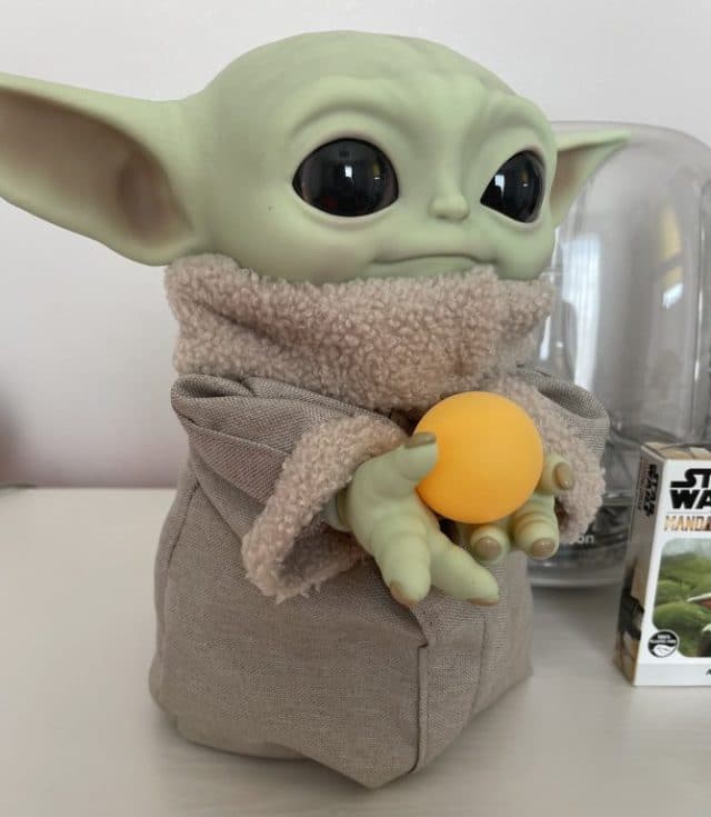 かわいいんだけど、劇中で見るグローグーとはだいぶ顔が違いますね。