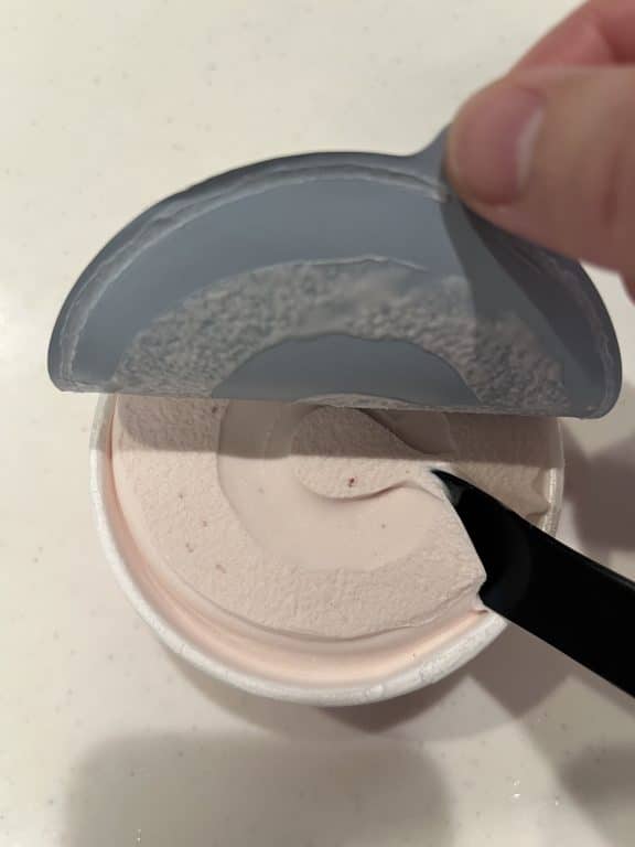 普通のスプーンで食べたらまあまあかたいはず。