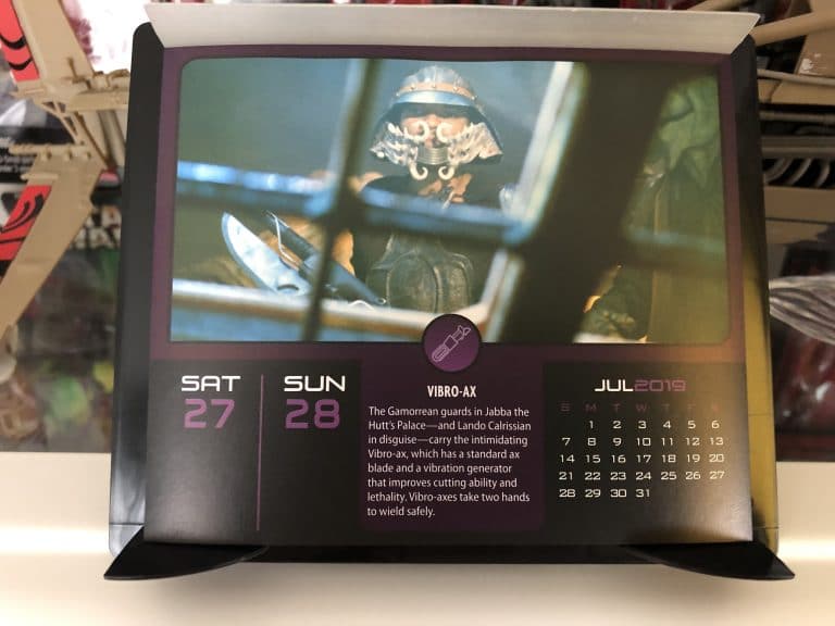 こんにちは。 東海地方は台風! 今から出勤なのですが、いつも駅から見える「愛・地球博」の名残の観覧車も、雨で霞んで見えません。 風もすごい! みなさん、気をつけましょう! スター・ウォーズ日めくりカレンダー。 週末の武器は、 バイブロ=アックス...
